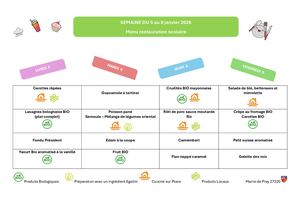 Des menus variés et équilibrés sont servis aux enfants. Les repas sont préparés et livrés par une société de restauration.