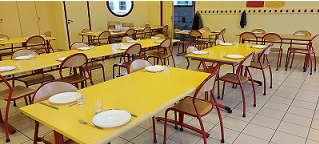 Des menus variés et équilibrés sont servis aux enfants. Les repas sont préparés et livrés par une société de restauration.